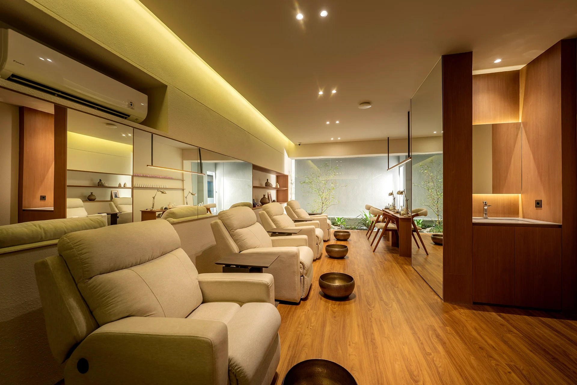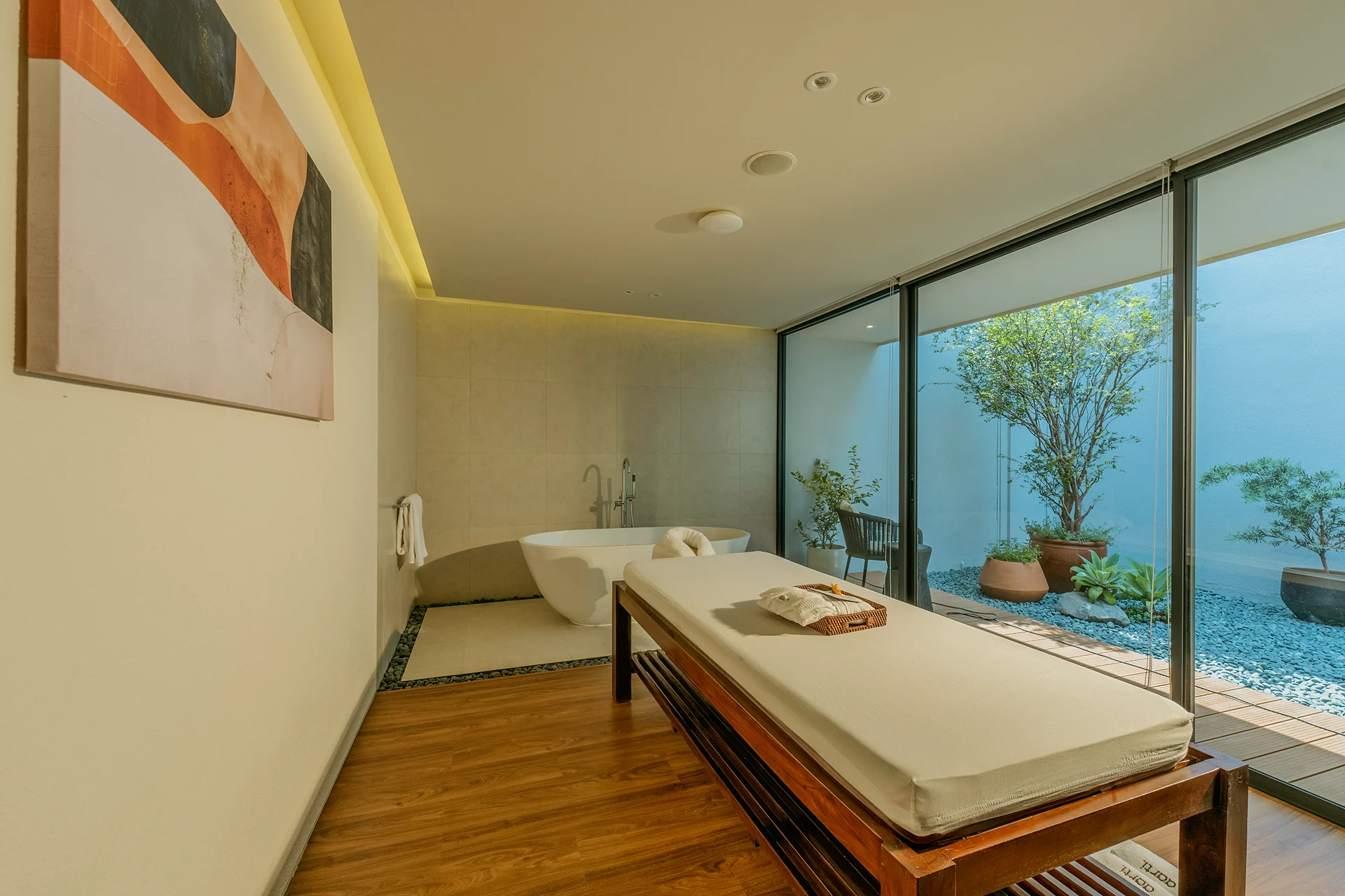 Aarti Wijaya is where the essence of our wellness philosophy comes to life. Thoughtfully curated interiors, warm lighting, and soothing aromatherapy create an intimate escape away from the rush of the city. Every detail is designed to support deep comfort, from skilled therapists to premium products that elevate each moment of your experience.
